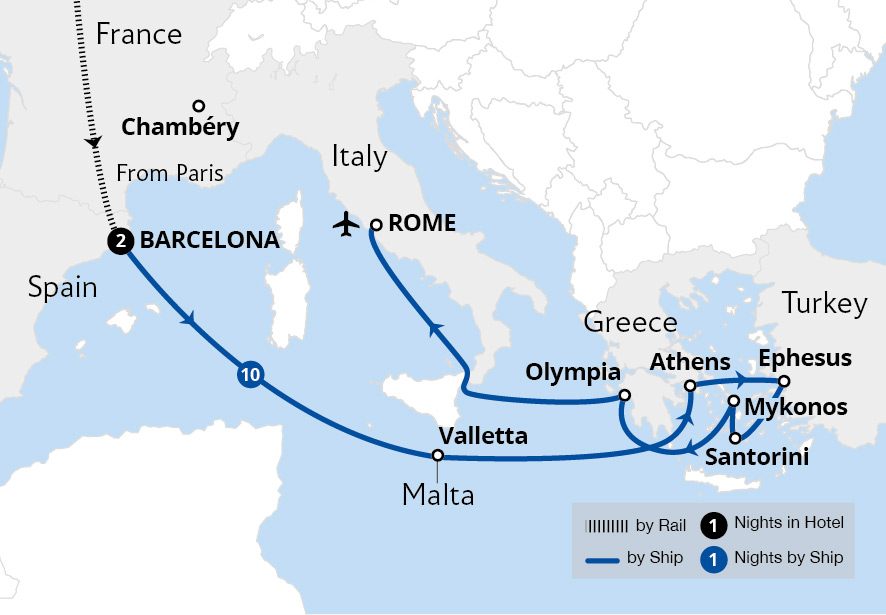 Embrace the spirit of exploration on an island-hopping journey which takes in the beauty, culture and immense history of the entrancing eastern Mediterranean. Journey by train to Barcelona for a tour of the city, before cruising the Mediterranean on the luxurious Celebrity Equinox to medieval Valletta on Malta. Encounter the iconic treasures of...