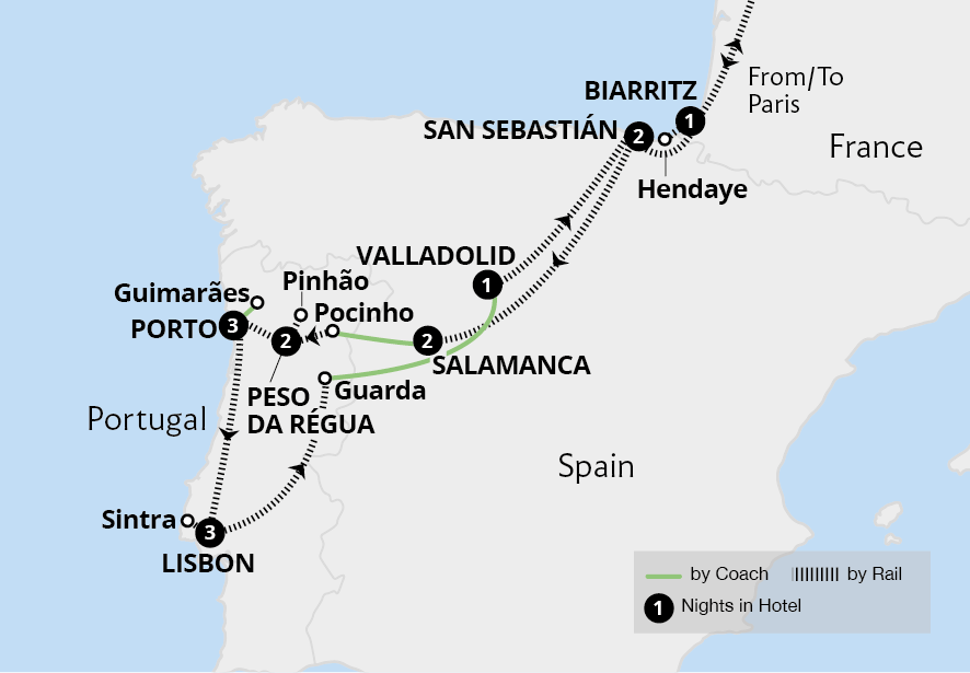 Flowing from northern Spain to the Atlantic Ocean, the Douro River carves a route through a rolling landscape of vineyards and idyllic locations. On this Iberian holiday, explore the Douro Valley by rail, travelling from Spain's 'Golden City' of Salamanca and through Portugal's beautiful countryside. Experience the region's iconic wine and...