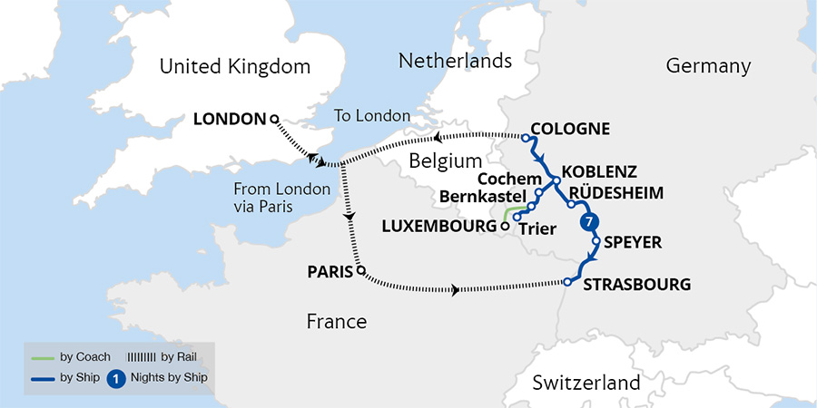 Join us as we uncover the Moselle and Rhine, where every bend of the river reveals breathtaking autumnal hues and every port beckons a new discovery. Ancient castles and Roman ruins sprinkle the red, gold, and orange landscape on this leisurely cruise as we sail by sloped vineyards and rolling hills ready for harvest. Visit charming towns like...