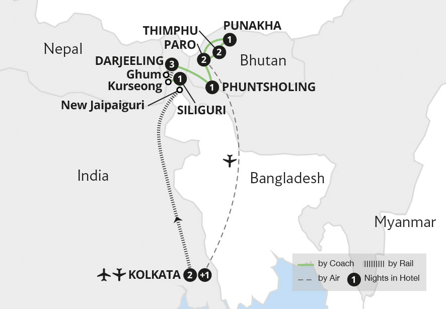 Experience the majesty of the Himalayas on this remarkable holiday that reveals the wonders of northern Bengal and the hidden treasures of Bhutan. Explore colonial Kolkata and embrace the beauty of the world's mightiest mountain range, travelling on the charming 'Toy Train' to the famed tea region of Darjeeling. Witness sunrise over the mountains...